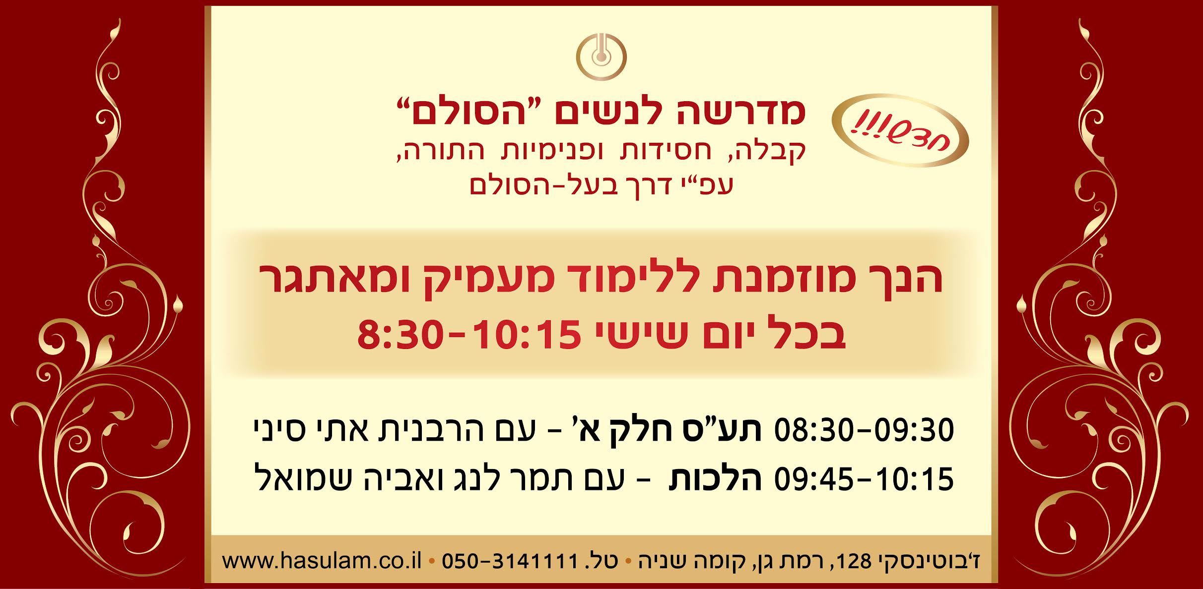 הידעתם? אנו לומדים חלק ב' בעיון בתלמוד עשר הספירות, השיעורים נמצאים באתר כמו כן וניתן להגיע בבקרים ולהצטרף ללימוד.