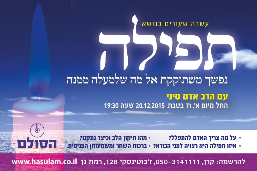 אחרי חנוכה, כשיסתיימו החגיגות, יפתח קורס "תפילה" בימי ראשון.