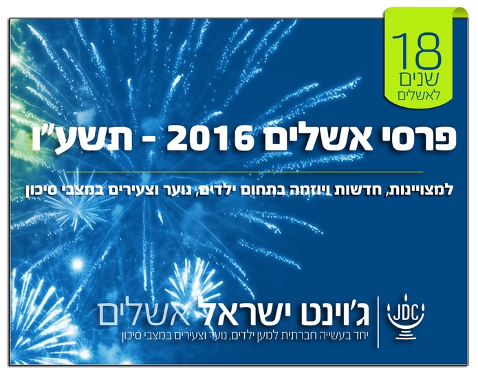ג'וינט ישראל – אשלים מעניקה פרס על חדשנות ומצוינות בפיתוח שירותים עבור ילדים, נוער וצעירים במצבי סיכון ובני משפחותיהם. מדי שנה ניתן הפרס בכנס אשלים השנתי, במעמד מנכ"ל אשלים, ד"ר רמי סולימני. הפרס מסמל את הוקרת הארגון לכל העוסקות והעוסקים בקידום יוזמות חברתיות למען אוכלוסיות מוחלשות.
