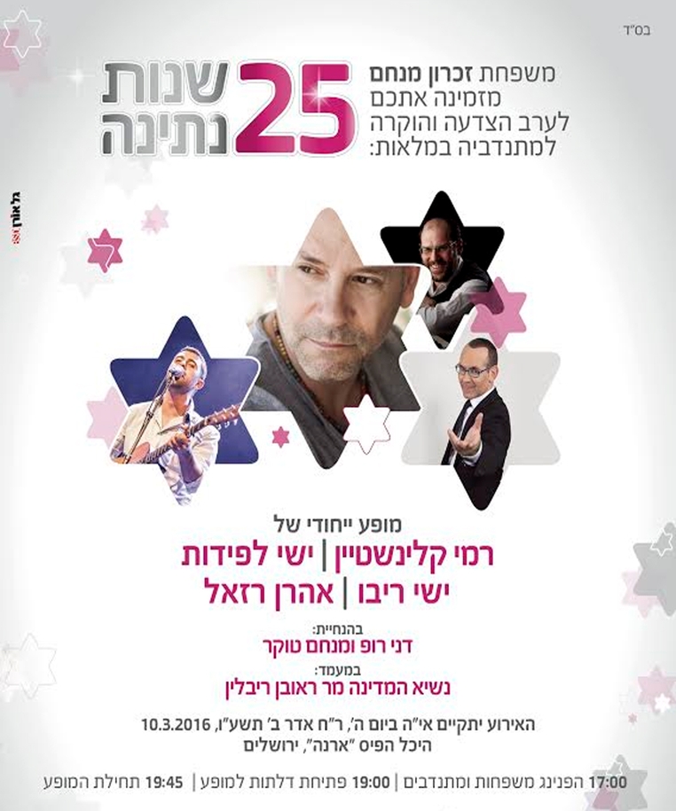 אנו קוראים גם לכם לקחת חלק בערב מיוחד זה לחזק את הילדים והמשפחות ולסייע להם לנצח! כל ההכנסות קודש למיזם החדשני של זיכרון מנחם לרכישת והפעלת מרפאות ניידות לילדים חולים במחלה בישראל,כי זה צורך השעה !