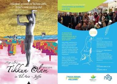 Tikkun Olam & BINA MITF (MASA Israel Teaching Fellows) - ages 21-30. Spend 5 or 10 months living, learning, and volunteering or interning in Tel Aviv-Jaffa, Rahat, Nazareth or Migdal Ha'Emelk. Apply now for fall 2016!