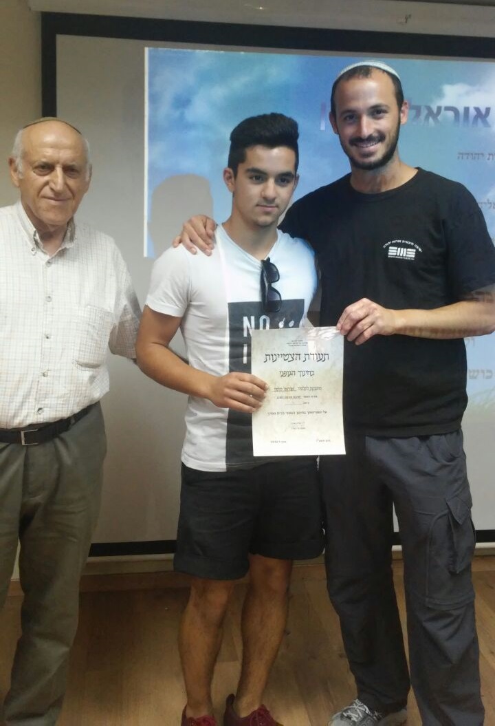 בטקס מצטייני חינוך גופני של מחוז ירושלים קיבל אוראל מכיתה י'2 תעודת מצטיין מחוזי.