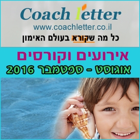 שלום דודי, מה שלומך? אתם מכירים את זה, שאתם לוקחים שני צעדים אחורה כדי לקבל תנופה לקראת הזינוק? ככה חודש אוגוסט, השילוב בין קריירה, ניהול העסק, חופשה עם המשפחה והילדים, מאתגר במיוחד... אבל זה הרגע למלא מחדש את האנרגיות, לקחת חופש, ליהנות, לתכנן את פתיחת השנה החדשה בעוצמה! ריכזנו לפניך רשימה של אירועים, כנסים וסדנאות שיתנו לך ערך מקצועי ויעשירו אותך ואת ארגז הכלים שלך. הלוח המסודר לפי סדר כרונולוגי. אך לפני שנתחיל, אנו מצרפות לךראיון מרתק: סיפור מעורר השראה של רותם כרמי וזוהר בעלה, שכבר שש שנים חולה ב ALS. הסיפור על איך אישה שמציאות חייה כל כך מורכבת ומאתגרת, מצליחה להסתובב בכל הארץ ולהרצות על אופטימיות. איך במהלך הטיפול בבעלה היא גילתה ששיפוץ חפצים מרפא את נפשה, ואחרי 9 שנים שהיתה עובדת סוציאלית הפכה לאמנית שמעבירה סדנאות ומשפצת מגירות.הראיון נערך ע"י ענת קלו לברון בתוכניתה 'טוויסט בעלילה' ברדיו מהות החיים. להאזנה לתוכנית>> אנו מאחלות לך המשך שבוע נפלא וחופשה מהנה ענת קלו-לברון וגינת רוגל, צוות הקואצ'לטר.
