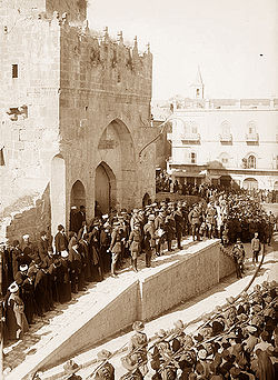יומיים לאחר מכן, ב11.12.1917 מעפיל גנרל אלנבי בראש צבאו לירושלים. הוא רוכב על סוסו ואחריו טור כפול של סוסים עליהם רכובים מפקדי הצבא הבריטי ופונקציונרים נוספים וגם לורנס איש ערב מספיק להגיע בזמן ולהצטרף לאירוע ההיסטורי.