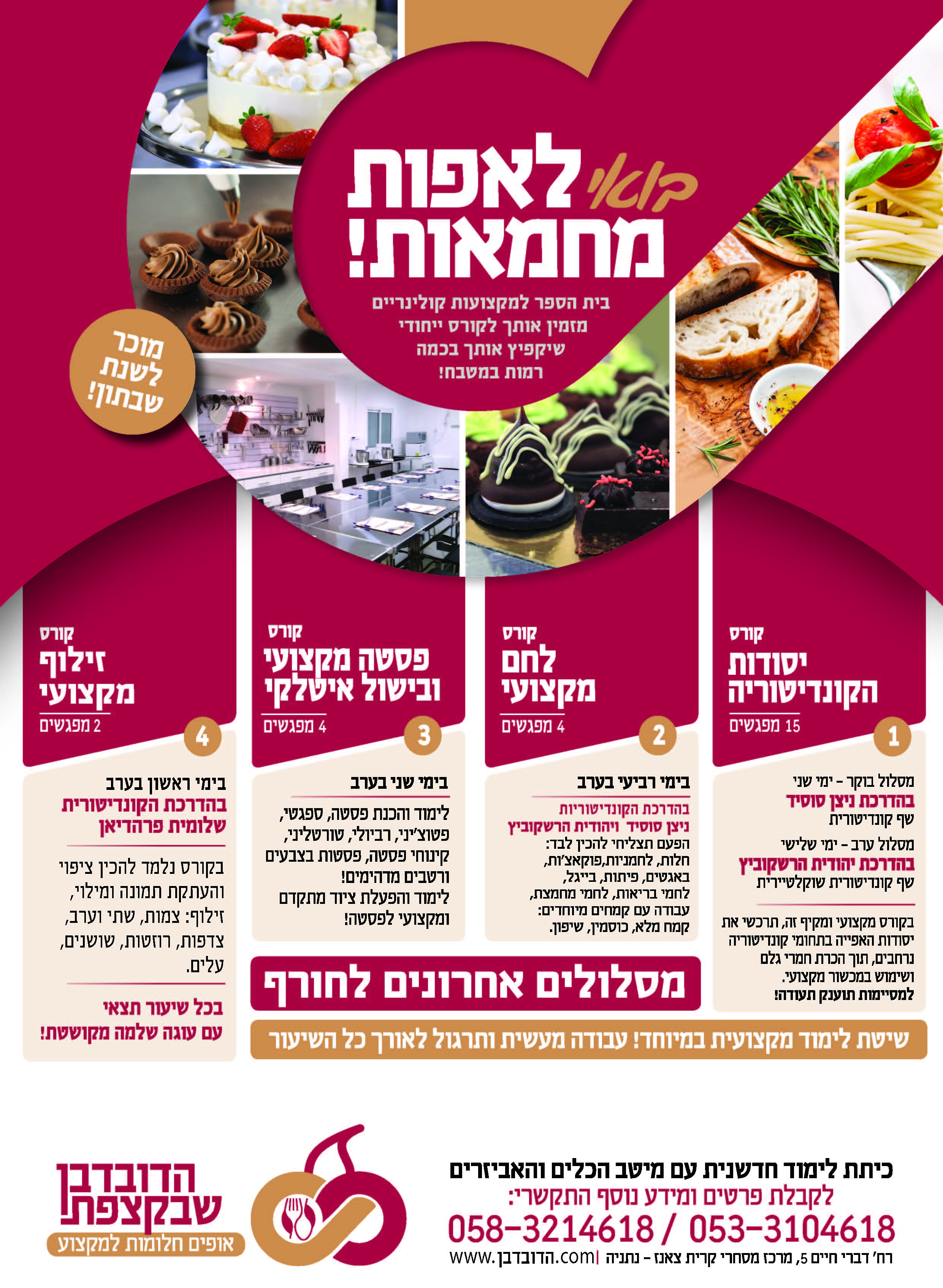 לפרטים הציצי במודעה המצורפת בסוף העמוד.