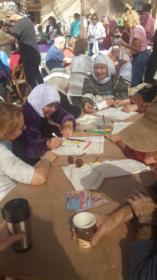 עשרות משפחות פלסטיניות מחברון, שכם ומקומות נוספים, וישראלים מכל הארץ הגיעו בסוף השבוע האחרון למואה בערבה לאירוע של בוסתן בני אברהם ולסדנת קוילט של נשים עושות שלום. המשתתפים, מבוגרים וילדים ישראלים ופלסטינים, הכינו 140 ריבועי שלום יפיפיים בניצוחה של שרה כספי שלנו (בתמונה למעלה משמאל).