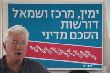 השחקן ההוליוודי הגיע לארץ להקרנת הבכורה של הסרט נורמן בכיכובו ונפגש בירושלים עם נשים עושות שלום. "מאוד התרשמתי מהקבוצה הזאת (...נשים עושות שלום). אני בא מארץ שיש בה חרדה וכאוס ברגעים הללו. כולנו מבולבלים. טוב שהתנועה הזו היא של נשים, לא של כעס אלא של אפשרות ושמחה, של מחויבות. תקוותי שהדחף הזה שבא מנשים אינו אירוע חד פעמי אלא משהו שיילך ויגדל, לכן מאוד שמחתי לראות אותן." מקבץ דיווחי התקשורת על המפגש.