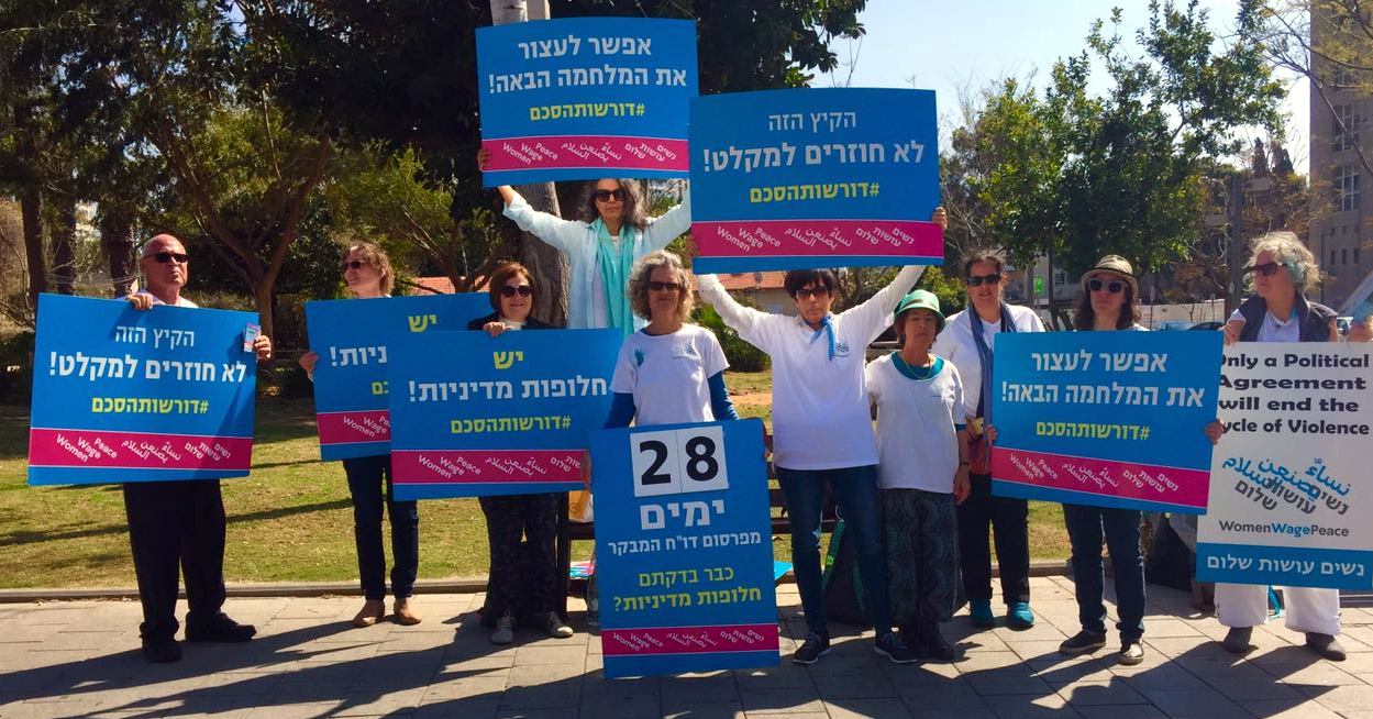 דוח מבקר המדינה על "צוק איתן" קבע שלא נשקלו חלופות מדיניות לפני המלחמה בקיץ 2014. בעקבות הדוח ונוכח דיבורים על הכנות למלחמה הבאה, אנחנו עומדות יום יום מול משרד הביטחון בתל-אביב בדרישה לבחון כבר עכשיו! חלופות מדיניות וליזום הסכמים שיעצרו את המלחמה. הצטרפו אלינו כל יום בין 12:00--19:00 ובימי שישי בין 9:00--13:00. לפרטים והרשמה הקישי כאן.