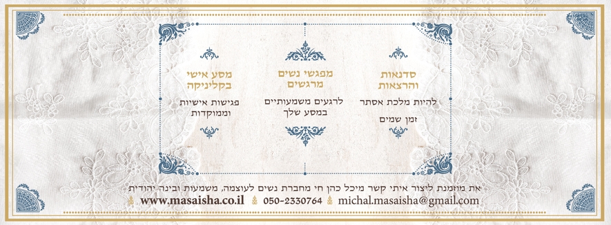 • להזמנת הרצאות וסדנאות לנשים050-2330764