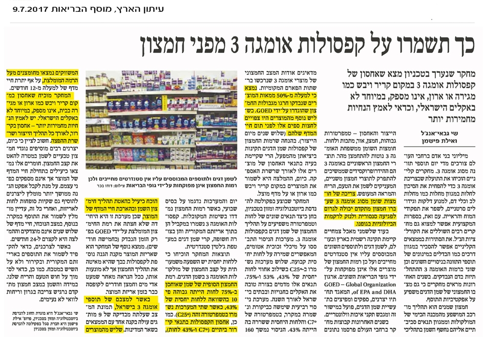 כך תשמרו על קפסולות אומגה 3 מפני חמצון – כתבה בעיתון הארץ