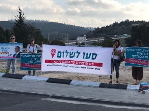 פעמיים, בתחילת יוני ובתחילת יולי, יצאנו לדרכים בדרישה להסכם מדיני. התפרסנו עם שלטים גדולים מצומת גומא בצפון ועד אילת בדרום. עִיזרו לנו לפרסם את המבצע ולצרף אליו נשים נוספות וצמתים נוספים. ספרו לחברות ולמכרות ועודדו אותן להצטרף. אנחנו נעזור בשלטים, בהכוונה ובקריאות עידוד.