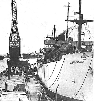 בניירובי שוכנו הגולים במוסך גדול בשטח שדה התעופה, ולמחרת ב07.30 בבוקר הם עלו על מטוסי "דקוטה", ולאחר מספר טיסות וחניית לילה הם הגיעו לנמל טוברוק שבצפון לוב. שם המתינה להם, כמה אירוני, אוניה בריטית בשם "אושן ויגור" (בתמונה), שעסקה במשך שנים בגירוש מנמל חיפה של אנשי ההעפלה הבלתי לגאלית, והעברתם למחנות המעצר הבריטיים בקפריסין .