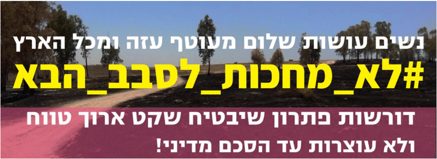 אנחנו לא מחכות לסבב הבא! הצטרפו מחר לנשים מעוטף עזה ומכל הארץ בשעות 12:00-14:00 ברחבת קריית הממשלה ליד קניון עזריאלי. לפרטים נוספים יש להקיש כאן.