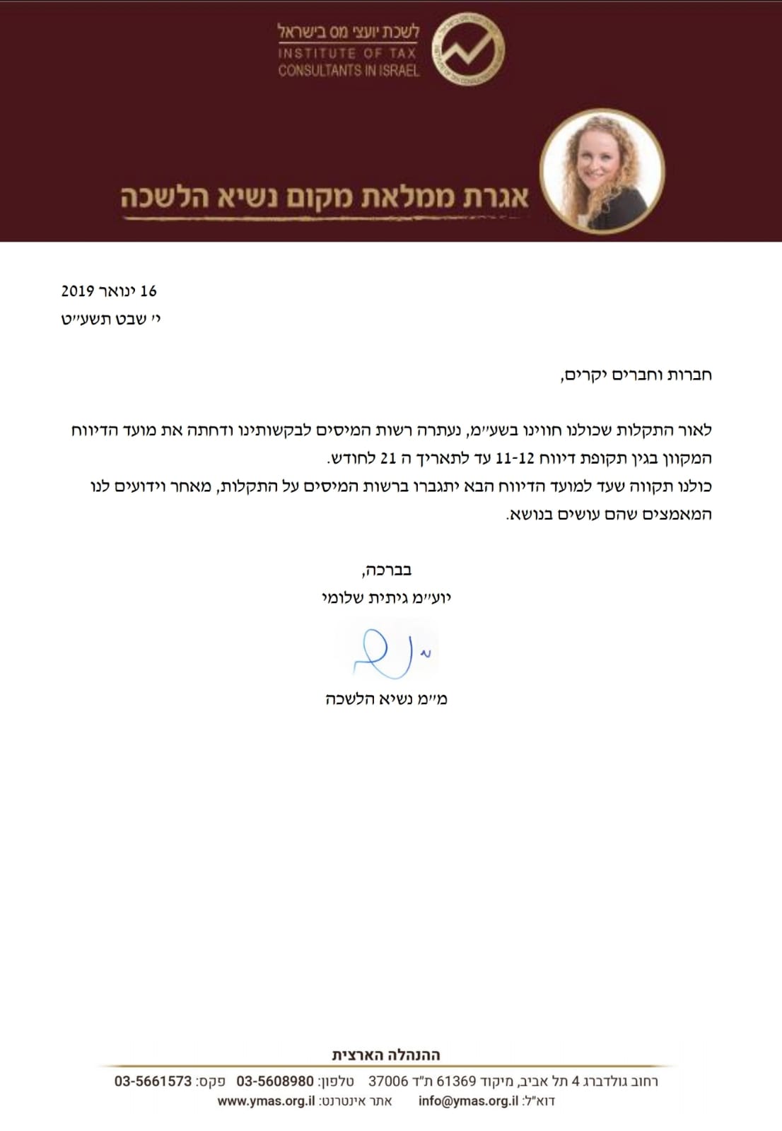 שולח: לשכת יועצי מס בישראל
