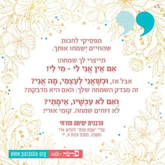 * על הבחירה בשמחה בעולם לא מושלם * על המסר המורכב והמרגש שאבא יכול להנחיל לבנו ולבתו (וגם אמא) * על הרגעים הקשוחים האלה, שאת יורדת ממלכותך * על ה"אקססוריז" המשמחים של החיים * על הכנפיים הבלעדיות שאת יכולה להרכיב על כתפייך בבוקר * על זוגיות, אהבה, והיכולת הנשית הבלעדית להדביק אחרים בשמחתך * "ועל ידי ריקודים ומחיאת כף..." * כל אלה ועוד, והכל-הכל שזור בסיפורי רבי נחמן מברסלב, אמן השמחה. ובאמת, רק עצם המילה "שמחה", לחזור עליה שוב ועוד פעם, זה כבר משמח! |