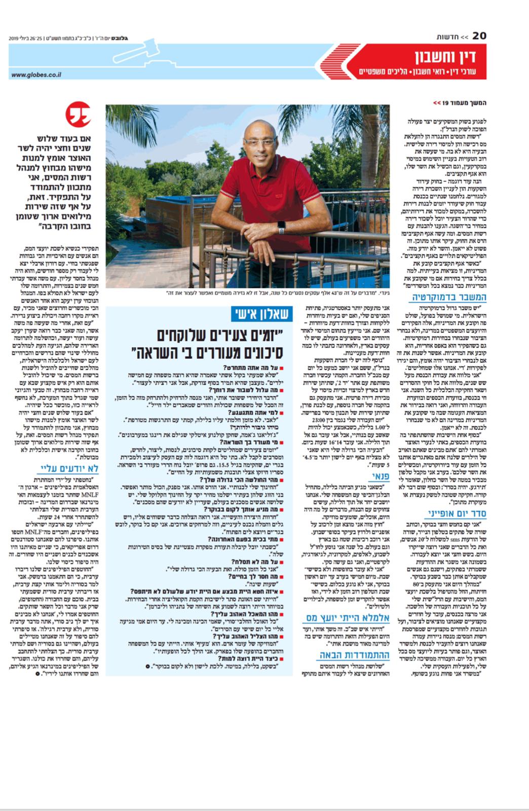 קבלו את נשיא הלשכה בכותרת בעמוד הראשי של גלובס ובכתבה מיוחדת בת 3 עמודים, ותכירו אותו, כמו שמעולם לא הכרתם.