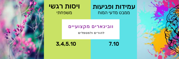 | הערב יום ה' 3.10 וובינאר: ויסות רגשי עצמי-משפחתי. שלושה מפגשים לבחירתכם.