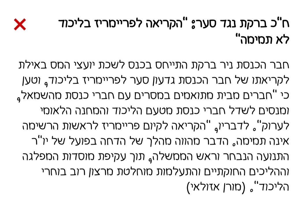 | חברות וחברים יקרים, מצורפים פרסומים רבים מאוד המסקרים את נאומו של ח"כ ניר ברקת אמש בערב הפתיחה של הכנס השנתי שלנו באילת וגם תחילת סיקור מהפאנלים המקצועיים, שהחלו הבוקר: לצפייה בכתבה באתר YNET לצפייה בכתבה בעיתון ישראל היום לצפייה בכתבה בעיתון הארץ לצפיה בכתבה באתר ערוץ 1 לצפייה בכתבה בערוץ 13 רשת לצפיה בכתבה באתר מעריב לצפייה בכתבה באתר וואלה לצפייה בכתבה בערוץ 7 לצפייה בכתבה באתר קול חי לצפייה בכתבה באתר כיפה לצפייה בכתבה באתר סרוגים כתבה נוספת באתר סרוגים לצפייה בכתבה באתר הידברות לצפייה בכתבה באתר NEWS1