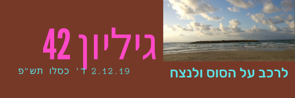 פרטים נוספים כאן בקישור. המפגש הינו השני בסדרה: 'מהקיצון אל האמצע - לאור הטראומה', הכוללת מפגשים וחומרי העשרה. המפגש הראשון עסק בהתמכרויות והשלישי יעסוק בכמיהה לריפוי. | | | | | | | | לרכב על הסוס ולנצח שיחה עם עדן, מפגש של טוהר מזוקק | | לעדן מוניטין מרשים כרוכבת סוסים תחרותית. דרך של השקעה, מכשולים והצלחה שלבטח עיצבה את אישיותה. השיחה תאפשר לכם לראות בעיניים חדשות קשר הורה-ילד. 48 דקות חשובות מאד לכל הורה ומטפל ולכל מי שאומץ. גם אם ילדתם ילדים ואחר כך הפכתם למאמצים/ אומנה חשוב להקשיב. ישנם מאפיינים יחודיים וצורך בהתאמת ההורות. השיחה שלי עם עדן נערכה במוצ"ש 23 נובמבר 2019 - יום המודעות לאימוץ ברחבי העולם. קישור לשיחה עם עדן