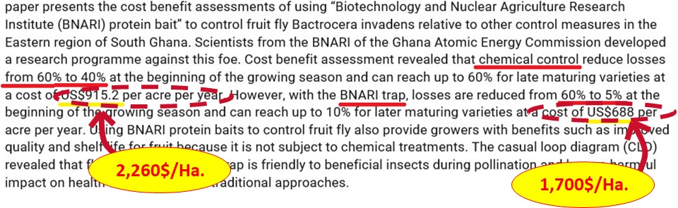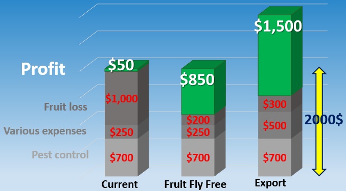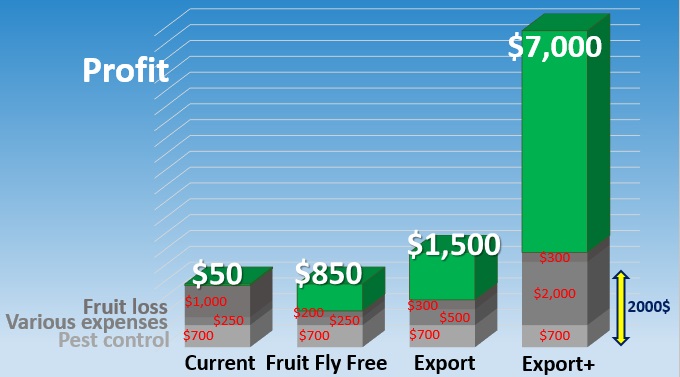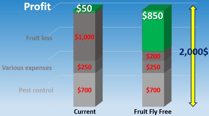 | press here to watch on the web | | | . | | | Can A Mango Grower Increases Profit By 1,700% [In A Single Year]? | | (The article is discussing Global Problems while using Africa as a Case Study) This article is pure gold! Read it, print it, and follow it every day until you complete the roadmap and get the results you dream of. ------------------------------------------------------------ I am aware that due to objective reasons, most of the world's farmers live in poverty, unable to recover from their situation. Poverty is so great and unbelievable extended that trying to improve their income by 'just a little' or having them 'enough to survive' is simply not the solution. What is needed is a long-term solution, which requires deep state-level structural changes. But, can the income be increased even before such (long term) structural changes have taken place? Is raising income limited to a few percents per year, or can it be more than that? Is it possible to increase income by tens of percent, or even hundreds of percent in a year or two? I believe that it is our professional and moral duty and that it is possible to raise farmers' income almost immediately. In order not to leave this as a theoretical idea, I will illustrate this with a specific example in a specific agricultural sector. One can assume that the same, with required adjustments, can be copied and implemented to other sectors. The Example Background Note: The numerical underlying assumptions presented represent the “as is” state in many markets. In some markets, the numbers are likely to be slightly different, but similar trends are expected. The Assumptions * Sector – Mango growers. * Crop area size and worldwide distribution - Mango is common throughout Africa and Asia, with tens of thousands of hectares in every country. India, the largest mango producer accounts for over 40% of the world's production, with over 2 million hectares. * Yield per hectare – for our example we use 6,000 kg per hectare, which is somewhat high for most growers. * Farmers' price per kg – for domestic 0.33 USD, for export 0.5 USD. * Major problems - the average loss of crop due to pest damage (especially fruit flies) is 50% (and even more). Fruit fly infestation is especially critical for income increase since it blocks any possibility of exporting and getting a premium price. Reliability of Data The data presented below is the real data from many field tests and trials, which previously was presented to farmers and experts in the field. The common reaction was that the actual expenditure is higher. I decided to leave it as is, to show that even under favoring assumptions the situation today is unbearable. Cost of Fruit Fly Control Measures Investment in fruit fly control is one of the major cost components for farmers growing mangoes. While many farmers gave up and stop treating for fruit flies, the ones who continue to fight usually take one of the following methods: 1. Commercial - The main method used is by applying a mix of – sprays + traps + sanitation. Cost often ranges from 500 USD to 1,000 USD per hectare. Common infestation while using the Commercial technique is about 50% (even more after the rains). | | | The study made in Ghana. It presents the cost of fruit fly control, ranging from 2,260 $/Ha to 1,700 $/Ha. (source) | | | 2. Bags – used mainly in the Far East with a cost depending on the yield. For 6,000 kg/Ha the cost is expected to be 2,000 USD. Infestation is very low when using this technique. 3. Sterile Insect Technique (SIT) – SIT is mostly used in conjunction with sprays + traps + sanitation. Cost often ranges from 1,500 USD to 3,000 USD per hectare. Common infestation while using the SIT is about 50% (even more after the rains). In order to illustrate, we will use as the cost of fruit fly control under all scenarios is the same as the Commercial method, with an average cost of 700 USD. Scenario 1 - Current Structure of current revenue expenditure. Potential income is 2,000 $/Ha. Due to high investment in fruit fly control and high yield loss of 50%, the profit is only 2.5%, which equals to 50 $/Ha. | | | The baseline for calculations, 0% added income. | | | Scenario 2 - Effective Fruit Fly Control From Scenario 2 and onward, we assume that fruit flies are effectively controlled. | | | Applying FreeDome in a mango orchard. | | | Potential income remains 2,000 $/Ha. All expenses are the same as in Scenario 1. Fruit fly infestation is decreased by 80%, and as a result, the profit soars by 1,700% (17 times), to 850 $/Ha. Note that in practice fruit fly infestation is commonly decreased by over 95% while using FreeDome, and often we were unable to find an infestation. | | | Expenses and yield per hectare, as well as price per kg, remain the same as in Scenario 1. Income is increased by 1,700% to 850$ per hectare. | | | Scenario 3 - Early Export Here we assume the same yield, but part of the yield is now going for export markets at a higher price per kg. Therefore the potential income increases to 3,000 $/Ha. Expenses and fruit loss (due to higher standards) is slightly increased. Fruit fly infestation is decreased to Export Standards, and as a result, the profit soars by 3,000% (30 times) versus Scenario 1, to 1,500 $/Ha. IMPORTANT Scenario #3 requires government intervention and is scheduled for execution under the Green Valley National Export Project (GVNEP). | | | In Scenario 3 - expenses per hectare and price per kg are slightly higher. Yield per hectare remains the same. Income is increased by 3,000% to 1,500$ per hectare. | | | Scenario 4 – Export and Increased Yield The dramatic change in Scenario 4 is the increased yield, from 6,000kg to 20,000kg per hectare, through Capacity Building set of activities. The potential income increases to 10,000 $/Ha. Note the great increase in 'Various expenses', which is a result of much higher standards required to stand in Export Quality. Profit soars again, this ti