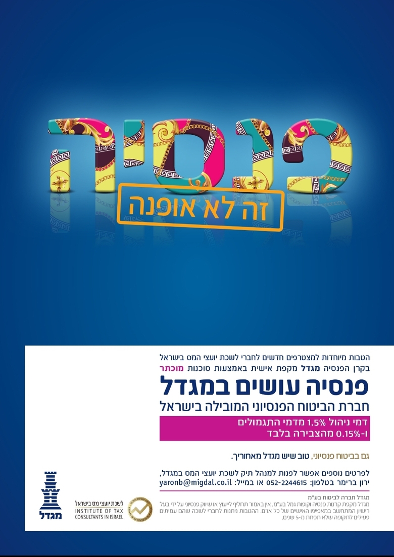 כמו כן, הצליחה לשכת יועצי המס לתת לכם ולעובדיכם הטבות חסרות תקדים דרך חברת הביטוח מגדל לקרנות פנסיה והשתלמות.
