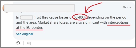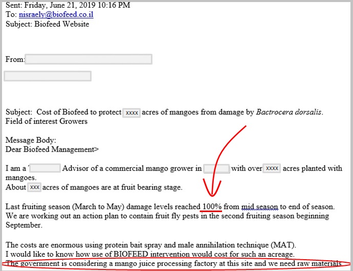 | We understand that 50%, 60%, 80%, 100% fruit loss are not 'just numbers'. For endless number of farmers, it means a terrifying loss of the expected annual income and the continuation of life in poverty. For the country, it is a continuation of not being able to get money from Export and no resources for investment in development. Relating to the first example, the early investment in the processing factory will create a useless construction and no employment. Postponing the construction while waiting for raw material will not create new jobs. In both cases, the economy lost! AN ORCHARD IS FOR TENS OF YEARS BEFORE you invest all your money in a new plantation or a new plant (factory), make sure that you can get the desired results, in terms of quality and quantity. A suggestion – always aim for the best quality and the highest quantity. If you aim low, you may find yourself at the very low. Since these plantations were planted in a period prior to the FreeDome era. It is therefore clear that there was no effective solution to fruit flies at that time. Therefore, it is possible that planning did not take into account the expected damage from the most important and dangerous pest of this crop and the expected impacts on plant operations and profitability. Fruit growers collect their crops only once a year. Therefore, misplanning is disastrous for poor growers and means that only next year (maybe) they will earn. For example, when countries are encouraged to grow mangoes, which 50% of them are infested, they cannot be exported and sometimes even marketed to the local market. The outcome is, instead of helping the local economy; we now need to finance the project, plus food import for the local market. CONCLUSION – to change the future of such farmers/countries and their plantations there is an urgent need for the Farmer and the Government to re-plan the project and set it into a new direction, where income is high and the probability of income from export is high as well. IS IT FATE? Of course NO! With proper, up-front, ahead of time planning, you can find out if the climate, soil, logistics, and pests allow and justify investments in a specific crop or another. With proper planning, you can prepare the necessary elements to achieve success. Then you can predict the economic impact and profitability of the project. Clearly, it's all about thorough and meticulous planning, and …great execution. If you want great results, you need great inputs, along with a knowledgeable and experienced team that knows how to make the most of it. MY RULE OF THUMB I realized the importance of planning while I was working on some very complex projects. In Biofeed, we found that planning is so critical that today we invest in most projects 70% to 95% of the time on planning alone. In some cases, the planning phase may continue over 5 to 10years! So when you meet me in the field, and you see me doing things fast and easy, know that for every hour in the field, first I worked days, weeks, months, and sometimes even years with my team. FIXING Planning refers to future projects and activities. But what about farmers and projects that are already running? What about re-planning or re-design? Fortunately, unlike in the past, today it is possible to solve, within a short time, the fruit fly problems. There is no more a need to wait 3, 4, 5 years to see IF the solution works, just to find that it doesn't. Now, thanks to Biofeed FreeDome, a GCFR-based solution, it is possible to see results within 3 to 6 months! Only! Nearly like magic, it enables to quickly introduce effective fruit fly solutions. It is true even in (common) cases of a complex of several fruit flies in the same orchard. Thanks to EXCELLENT PLANNING, for the first time, the future can be turned around and, in fact, Turn Back The Clock for the benefit of millions of fruit growers around the world who suffers regularly from fruit fly attacks. What is the status of agri-industry planning in your country? On a scale of 1 to 10, how satisfied are you with the situation? |