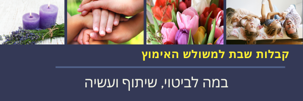 עד ה- 18.4.20 מבצע הרשמה לתכנית חוכמת האימוץ והאומנה: 70 הדרכות ומפגשי זום, מנוי לחצי שנה כולל בונוס מיוחד:ליווי אישי משפחתי לחודש ימים. התכנית + ליווי במחיר אחד. לפרטים ולהרשמה בקישור כאן. | לסליקת אשראי כאן |