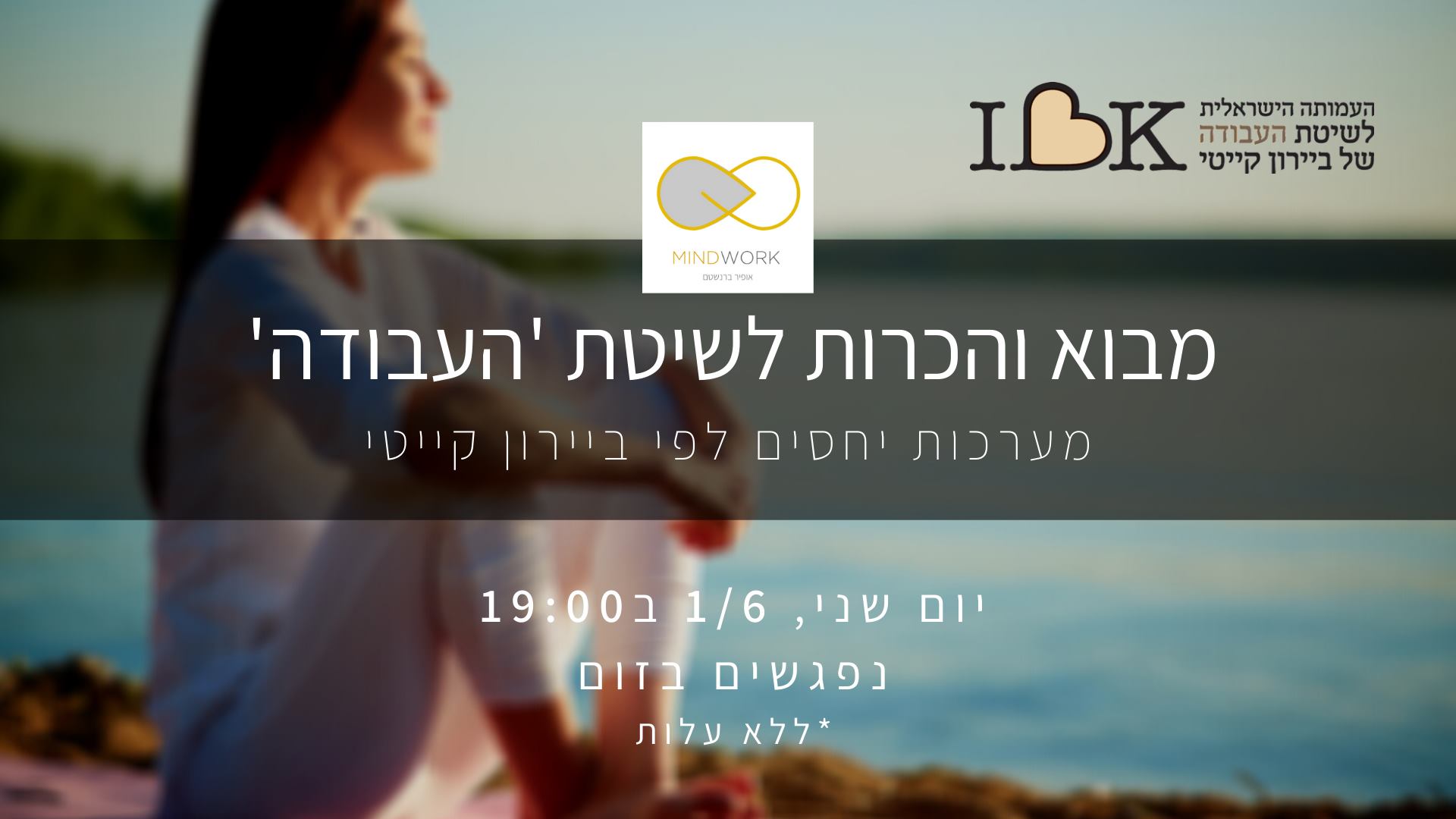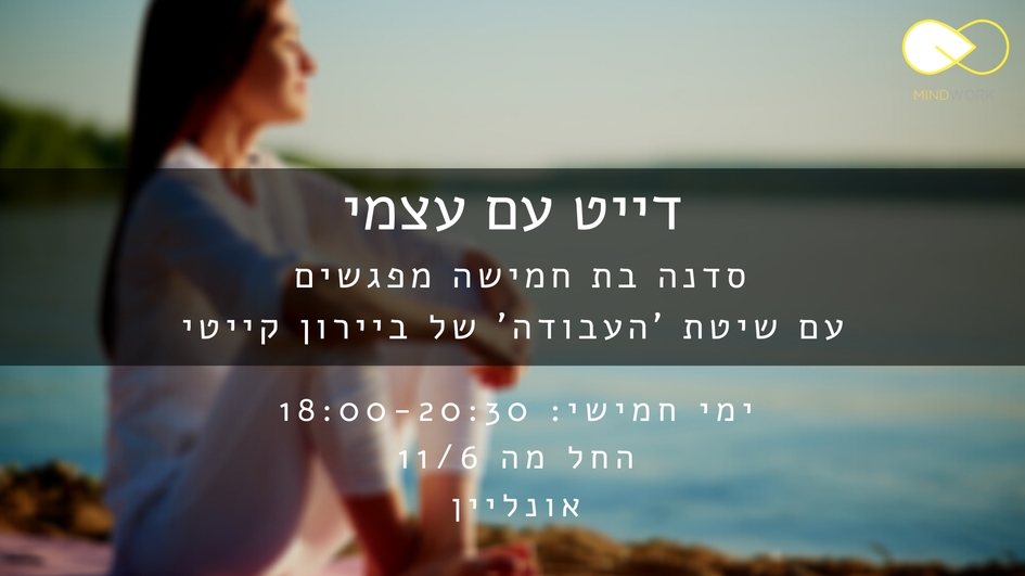 הצטרפו אלינו ללייב שבועי בפייסבוק בימי שלישי ב 18:00. ניפגש ל 30-45 דקות ונעשה את העבודה על נושאים אקטואליים שחשובים לכם ושעולים מהשטח. זו הזדמנות מעולה לחקור מחשבות שמעוררות בנו כעס, עצב, תסכול, חרדות ודאגות ולהפחית בסטרס, לשמור על המערכת החיסונית\נפשית שלנו, לשפר את איכות החיים ולתרגל את העבודה של ביירון קייטי.
