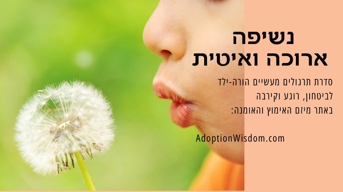 | תרגילים מחוללי שינוי ושקט פנימי | | תרגילים פשוטים ועוצמתיים להורה וכמובן ליחד שלכם. התרגילים משרים ביטחון, קירבה וקשר. הם מייצרים ריכוז ומיקוד וכן תחושת גבול עצמי וגבולות הזולת. תרגלו עם עצמכם ומכאן תוכלו לשתף את הילדים. בעדינות ובזרימה. סדרה חינמית במתנה (בינתיים) הכוללת: סרטון הקדמה ועוד ארבעה תרגילים כל אחד מוסבר בסרטון נפרד. תהנו.