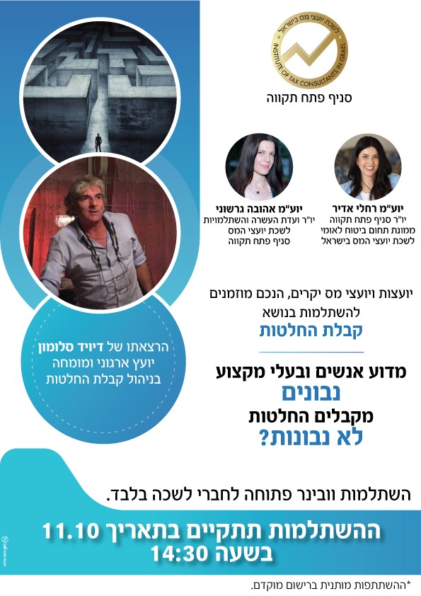 סניף פתח תקוה מזמין את חברי הלשכה לוובינר ייחודי בנושא קבלת החלטות