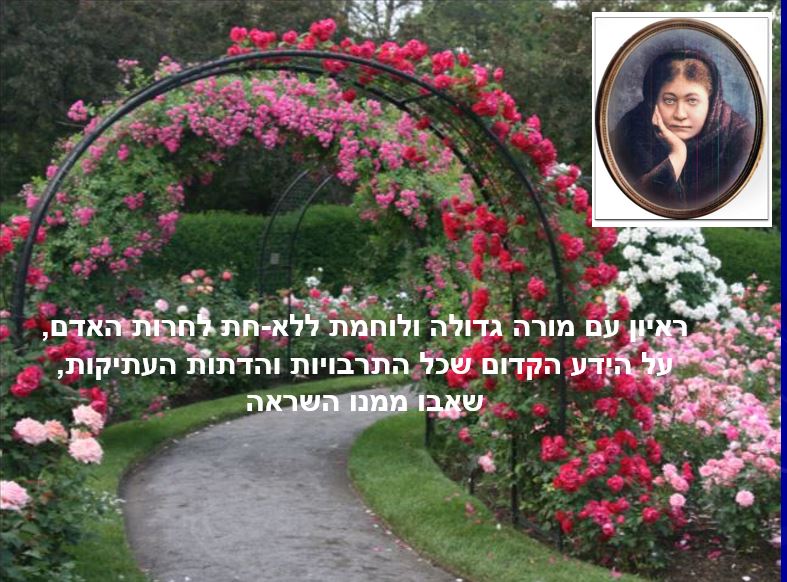 | ראיון עם הלנה בלבצקי, לוחמת ללא-חת לחרות האדם והמייסדת של התנועה התאוסופית: על הידע הקדום שכל התרבויות והדתות העתיקות, שאבו ממנו השראה (ראיון זה מתפרסם במסגרת האירועים לציון 145 שנים להקמת התנועה התאוסופית) (ראו בהמשך קישורים ל 3 סרטונים קצרים כהרחבה לראיון) ש. מה המשמעות האמיתית של המונח "תאוסופיה"? ת. "חוכמה אלוהית". תאוסופיה (יוונית) – חוכמת האלים...פירוש המילה תאוס ביוונית היא אל, כלומר אחד היצורים האלוהיים, ודאי לא "האל" במשמעות המיוחסת למונח זה בימינו. לכן אין היא "חוכמת האל", כפי שמתרגמים אותה אחדים, אלא "חוכמה אלוהית", מעין זו שברשות האלים. ש. מהו מקור השם? ת. השם בא מן הפילוסופים של אלכסנדריה, שנקראו אוהבי האמת – פיללתיאנים – שם שנגזר מ-פיל (שפירושו אהבה) ו-אליתיה (אמת). מקור השם תאוסופיה במאה השלישית לספירת הנוצרים, מאמוניוס סאקאס ותלמידיו1], שיצרו את השיטה התאוסופית האקלקטית. ש. מה היתה מטרת השיטה הזו? ת. ראשית כל, להחדיר אמיתות מוסריות גדולות לתלמידיה ולכל אלה שהיו "אוהבי האמת". הסיסמה שהאגודה התאוסופית אימצה לעצמה היתה: "אין דת שהיא נעלה מן האמת". מטרתם העיקרית של מייסדי האסכולה התאוסופית האקלקטית הינה אחת משלוש המטרות של יורשתן המודרנית, האגודה התאוסופית, והיא: להשלים בין כל הדתות, הכיתות והאומות, בתוך מערכת כוללת של תורת מידות, המבוססת על אמיתות נצחיות. ש. כיצד תוכל להוכיח כי אין זה חלום באספמיה, ושכל דתות העולם מבוססות על אמת אחת, המשותפת לכולן? ת. על ידי מחקר וניתוח השוואתי. "כל הפולחנים העתיקים מרמזים על קיומה של תאוסופיה אחת ויחידה שקדמה להם. המפתח שיפתח דלת אחת, חייב לפתוח את כולן, אחרת אין הוא יכול להיות המפתח הנכון". ש. בימיו של אמוניוס היו כמה וכמה דתות עתיקות גדולות. במצרים ובארץ ישראל רבו הכתות לאין ספור. כיצד יכול היה להשלים ביניהן? ת. הוא עשה מה שאנו מנסים לעשות שוב ושוב. הניאו-אפלטונים היוו גוף גדול והשתייכו לפילוסופיות דתיות מגוונות. כך גם התאוסופים שלנו. באותם ימים קבע אריסטובולוס היהודי, שתורת המידות של אריסטו מייצגת את התורה הסודית של דת משה. פילוס האלכסנדרוני השתדל להשלים בין התורה הפילוסופית של אפלטון לבין זו של פיתאגורס, ואילו יוסף בן-מתתיהו הוכיח, שאיסיי הכרמל הם מעתיקיהם וממשיכי דרכם של ה-תרפויטים (המרפאים) המצריים. כך גם בימינו: אנו יכולים להצביע על קו ההשתלשלות של כל דת נוצרית, כשם שאנו יכולים לעשות גם לגבי כל כת, ולו הקטנה ביותר. היה זה אתגרו של אמוניוס – לשכנע שוב ושוב את הגויים, את היהודים, את הנוצרים ואת עובדי האלילים, שיניחו את טענותיהם ומריבותיהם ויזכרו רק את העובדה, שהם מחפשים אחר אותה אמת בשינוי אדרת. בנים הם לאם אחת. זוהי גם מטרת התאוסופיה. ש. מנין נובעת סמכותם לומר זאת על התאוסופים העתיקים של אלכסנדריה? ת. מחברים ידועי שם רבים מעידים על כך. אחד מהם, מוסהיים, אומר: "אמוניוס הורה, שדת ההמונים הלכה יד ביד עם הפילוסופיה, ושתיהן עוותו ועורפלו בהדרגה על ידי אמונות שווא ומרמה אנושית, פשוטו כמשמעו. לפיכך יש להשיבה לטהרתה הראשונית על ידי זיקוקה מזוהמה זו, ולבאר אותה על פי עקרונות פילוסופיים". ושוב, זו בדיוק טענתם של התאוסופים המודרניים. ההבדל היחיד הוא בכך, שבה בשעה שהפילאליטיאני הדגול נתמך ונסתייע על ידי שני אבות כנסייה, קלמנט ואתנאגורס, על ידי כל הרבנים המלומדים של היהדות ועל ידי האסכולות הפילוסופיות היווניות; והוא עצמו לימד תורה אחת לכולם, הרי אין אנו, תלמידיו וממשיכי דרכו, זוכים להכרה, כי אם להיפך, הננו בזויים ונרדפים. לפיכך, דומה שהאנשים שחיו לפני 1500 שנה היו יותר סובלניים מן האנשים החיים במאה הנאורה הזאת. ש. האם לא זכה אמוניוס לתמיכה ולעידוד מצד הכנסייה, מפני שלמרות סטיותיו לימד נצרות והיה נוצרי? ת. כלל וכלל לא. הוא נולד נוצרי, אך מעולם לא קיבל את נצרות הכנסייה, כפי שאותו מחבר אומר עליו: "היה עליו רק להציג את רעיונותיו בהתאם לעיקריו העתיקים של הרמס, שאות