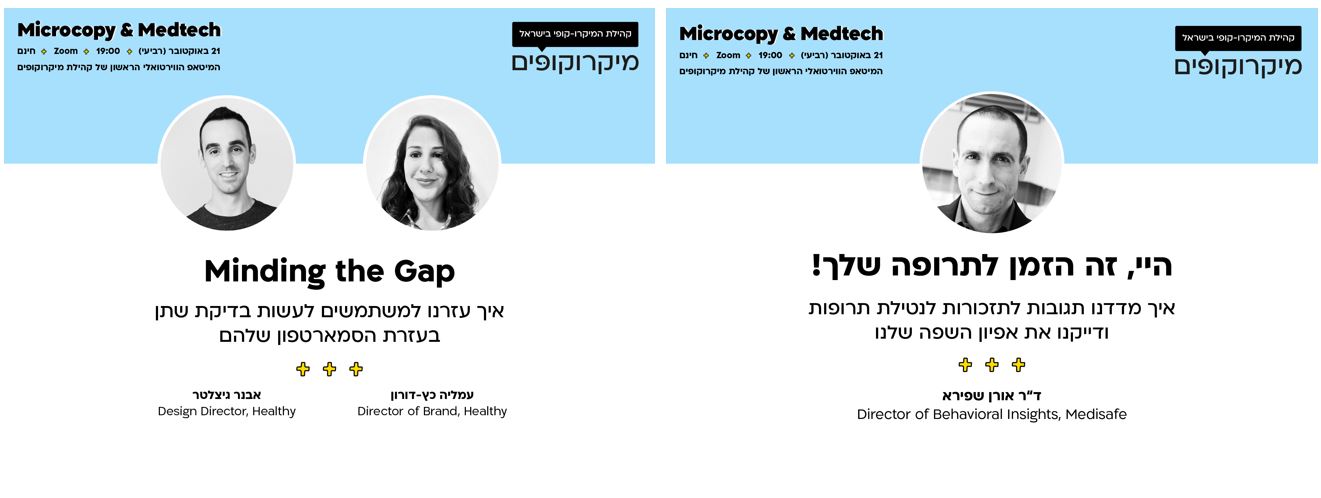 | | | בחזרה לספסל הלימודים | | יומיים לפני שהתחילה שנת הלימודים האקדמית נפל לי פתאום אסימון: אם אני רוצה ללמוד תואר שני, זה הזמן! כשלומדים מהבית בגלל הקורונה, כשאפשר לשלב את זה ביום עבודה עמוס ובפיג'מה – זה הזמן! אז שלחתי מייל חצי-מתחנן למנהלת התוכנית של תואר שני בחיפה ושאלתי בתקווה: עדיין אפשר? והיא ענתה: יש מצב, תשלחי גיליון ציונים. אז השגתי גיליון ציונים מתל אביב מלפני כמעט 20 שנה וחזרתי לאקדמיה רק כדי לגלות שאני מתרגשת מ-100 ומתבאסת מ-87 בדיוק כמו כשהייתי בת 21.... *** בקיצור, אני לומדת קורסי השלמה במדעי המדינה כדי ללמוד תואר שני במינהל ציבורי. אל תנסו למצוא קשר למיקרו-קופי, כי אין :) פשוט יש לי חלום ישן מאוד להיות בעמדה שיכולה להשפיע טוב על חיים של הרבה נשים ואנשים. אולי בתפקיד ניהולי, אולי פוליטי, אני לא יודעת. אני לא יודעת גם איך זה יקרה ומתי ואם בכלל, אבל הרגשתי שהגיע הזמן לגשש, להבין קצת מה קורה שם ולהציץ לתוך כמה דלתות. אז אני לא יודעת לאן השביל הזה הולך, אבל אני לומדת המון (המון!) ונהנית מכל שנייה, וכרגע זה כל מה שחשוב. *** במסגרת אחד הקורסים המליצו לנו לצפות בסדרה הקברניטים של רביב דרוקר, שסוקרת את רגעי ההחלטות הגורליות של חמישה ראשי ממשלה וראשת ממשלה אחת. אם מעניין אתכם ואתכן מאיפה הגענו לאן שאנחנו נמצאים עכשיו, איך דבר הוביל לדבר, ועוד פרטים קטנים וסופר-חשובים על אבני דרך בחיים של המדינה האהובה-מכעיסה שלנו – זאת סדרה מעולה. מתי בנזוגי כבר יודע שאם צפיתי בפרק (בדרך כלל כשאני הולכת על ההליכון) הוא צפוי לערב של תהיות כמו: ידעת שבן גוריון היה מכור לקריאת ספרים וככה הוא היה נרגע? וגולדה מאיר הייתה בעצם ראשת ממשלה אמיצה ומצוינת! וכהנה וכהנה. מזל שזה מעניין גם אותו. במחשבה שנייה, יכול להיות שזה ממש לא מעניין אותו והוא נותן לי ספייס להתלהב. מתאים לו. | | | צילום: פריץ כהן, לשכת העיתונות הממשלתית | | טוב, שנדבר קצת על מיקרו-קופי? | | | | ה-UX Writers Collective (ארגון של כותבות וכותבי UX בכירים מכמה מקומות בעולם) הכין רשימה של 50 פוסטים נבחרים שהתפרסמו ב-2020. יש שם פוסטים מהכותבים של אדובי, איקאה ונטפליקס, פוסטים על איך לכתוב אונבורדינג או הודעות שגיאה, הרבה טיפים למתחילים על תיק עבודות ועל איך זה להיות כותבת UX יחידה בחברה ועוד ועוד. האמת היא שאני לא ממש יודעת מה לעשות ברשימות עצומות כאלה ומאיפה להתחיל, אבל אולי משהו יצוד את עיניכם. אותי תפסו מספר 32, בגלל GPT-3 (היי מתי), ומספר 3, שבאופן מוזר בכלל לא עוסק במיקרו-קופי... | | | | | | אם יש לכם בקהל היעד הרבה משתמשים ומשתמשות מעל גיל 65 - האם צריך להפיק עבורם מוצר נפרד עם מיקרו-קופי ועיצוב אחרים לגמרי שיתאימו למבוגרים? או שאולי יש שינויים קטנים שאנחנו יכולים לעשות שיקלו עליהם מאוד את השימוש במוצר שלנו ויאפשרו לקהל הגדול והמגוון הזה לקבל את הערך שאנחנו מציעים? ב-13 בינואר (רביעי בעוד שבוע וחצי) ב-20:30 בערב אעביר עם ד"ר מיכל הלפרין בן צבי, מומחית לפסיכולוגיה של הזיקנה, הרצאה על 8 מאפיינים של הקהל המבוגר (זה החלק של מיכל), ועל 11 התאמות – פשוטות ופרקטיות – שאפשר לעשות במיקרו-קופי שלנו (זה החלק שלי) כדי שמבוגרים יוכלו להשתמש במוצרים הדיגיטליים שלנו בנוחות, בביטחון ובהרגשה טובה. | | | | | | | ההקלטות מהמיטאפ זמינות לצפייה | | איך עוזרים למשתמשים לעשות בדיקת שתן בסמארטפון, ואיך להניע מטופלים לקחת את התרופות שלהם? שתי ההרצאות ממיטאפ ה-MedTech שלנו זמינות לצפייה ביוטיוב ויש בהן אוצרות של ידע מניסיון על איך לעזור למשתמשים לבצע פעולות מורכבות ובאיזה סגנון כתיבה לבחור. | | | | | | | ממתקים לחובבי וחובבות השפה | | יש לי יחסים מורכבים עם האקדמיה ללשון עברית. מצד אחד, אני עורכת לשונית מוסמכת וסופר-מעריכה את העבודה שלהם. מצד שני, אני גם כותבת לדיגיטל, ושם הכללים של האקדמיה לא תמיד יושבים בול על מה שאני רוצה להגיד ואיך שאני רוצה להגיד את זה. אבל הרעיון המרכזי שאני מלמדת עד היום בכל הזדמנות - מקורו באקדמיה ללשון העברית: שהע