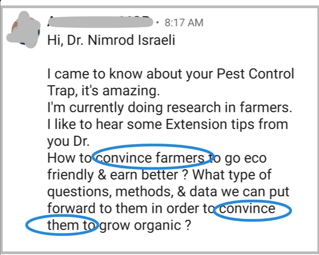 | If Farmers are the Students and we are the Teachers, then we should be patient – guide the farmers until they are self-motivated and ready to move. Never force a change. A SECOND ROOT PROBLEM Forcing a change on someone who doesn't want it or is not yet ready causes other problems. In times, those problems may develop and become Root Problems by themselves. This is the case of - MISTRUST. A huge economic, business-oriented, Root Problem! For this discussion and to be specific, I refer to the mistrust between fresh produce value chains in emerging economies and their trading partners in the premium export markets. Let's understand why MISTRUST with export trading partners is a Root Problem for emerging economies. Emerging economies rely on importing or getting from outside the country goods, technologies, knowledge, etc., for their development. To purchase the above, they need foreign currency. The best and most sustainable and reliable way of having a continuous influx of foreign currency is by exporting. What can you export? When 50%, and even more, of your labor force is engaged in agriculture, it only makes sense that you will export agricultural produce and goods. That is what you would normally do, unless quarantine authorities, importers, retail food chains, and consumers in the most lucrative markets mistrust your ability to provide what they expect and what you promised. Then they refuse to buy from you, and you can't export. Is there a trust today? Most mango producing countries in Africa and Asia are under export bans and ever-tougher export restrictions. Only 1%-5% of produce (if any) is exported. These are clear signs of deep mistrust. Why do they mistrust you? Because farmers and the value chain are not able to produce and ship their products according to the regulations, restrictions, and at the desired quality level. Over and over again, they fail to apply the required quality assurance and then fail to admit, cope with, and report the problems. The result is that quarantine authorities, importers, retail food chains, and consumers "trust" farmers and value chains in emerging economies to produce and export only the simplest low added-value products. For example, in the mango industry, most export from emerging economies is of low added-value products, such as juice, dry fruits, and fresh-cut salads, while export of high added value fresh (whole) fruits is very limited. FIVE-YEAR PROGRAM Now, what are those Root Problems got to do with our plans for the coming years? I described above two of the major reasons that caused other projects, programs, and companies active in the agro-industry in emerging economies, to fail: (1) Improper attitude to managing a change –leading to impaired motivation. (2) Mistrust – leading to an inability to export. As you already know, I wish to succeed by avoiding failure. It took many years to develop the Green Valle package and equip it with the proper tools. Now it is time to IMPLEMENT it, which is as important as the tools and the package itself. Applying the Green Valley package in the wrong place or in the wrong way will cause it to fail, which is bad for everyone. While considering the described Root Problems, with our desire to produce a permanent and sustainable economic change, let us ask (and answer) some decision-supporting (eye-opening) questions. Those questions may lead us to the five-year plan and even answer why only a few farmers can enjoy the plenty that Green Valley (GV) brings in 2021. How can we bring more foreign currency to emerging economies? Simply by increasing the agri-exports. How do we increase agri-exports in a short time? By working with "elite farmers" who are ready for it, striving to move forward, and just need the right support, as offered by GV. How do we provide and make accessible the "right support" that "elite farmers" need? By allowing them full access to the tools available in the GV package, i.e., business model, technologies, professional protocols, financing, marketing, methods, access to premium export markets, the Fruit Fly Certified Trade Zone (FFCTZ) protocol, etc. What is the Green Valley business model? Like any off-taker, GV's income is a result of a commission it gets from selling the produce. This way, GV keeps its interest aligned with that of the farmer; the higher the selling price, the quality, and the quantity, the more both parties gain. Hence, GV is taking a risk in the case that export quantity or price is low, and hence it will take longer to return its investment, or risk of losing. Who is financing all those goodies? Part of the Green Valley package is a business model for supporting the farmer to finance activities required for his professional-business success, ahead of the season, and providing a line of credit. Typically credit will cover about 50% or more of the essential inputs. How do you make sure the farmer will make the best from taking part in the Green Valley program? For each farmer, we tailor a specific professional development program. This program is based on HIS goals, targets, needs, and tools available in the Green Valley package. Business-wise, what is the up-side that farmers can expect? Increasing the profit of farmers is one of our most important goals. Hence, we want to see that farmers increase their profit, and not only the income. Because the yield, the varieties, the quality, etc., vary between farmers, it is impossible to give a precise prediction. However, imagine what happened to your business and profit when you decrease fruit fly infestation by 99% without sprays, increase the marketable produce by two digits' number, prolong the harvest season, export to better premium markets, etc.? Do you see the potential? And what is the down-side that farmers can expect? Probably the worst scenario is ending up with the current results; 50% fruit fly infestation, a small portion of marketable produce, harvest season only until the rainy season, the c