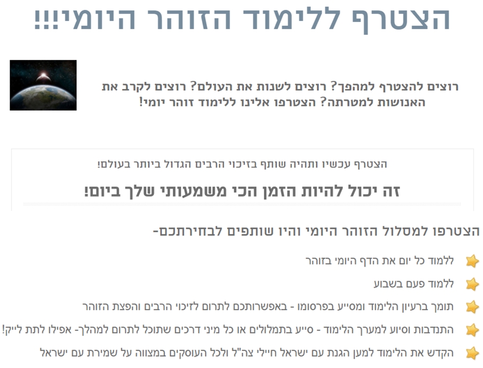 כמו כן מוזמנים להצטרף ללימוד של שיעור השקפה, או קבלת המסרים בוואצאפ והניוזלטר, הירשמו בלינק ותמכו ברעיון בהפצת הזוהר ועקבו אחרי המסרים, כל אחד שיתחבר כפי מה שיכול וברכת רשב"י הקדוש תהיה עליכם.