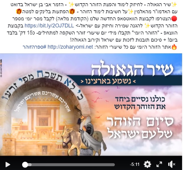 כמו כן יש קבוצת ווצאפ עם מסר יומי בזוהר סיכום קצר מהשיעור ולינק לשיעור השקפה - לחצו כאן להצטרפות