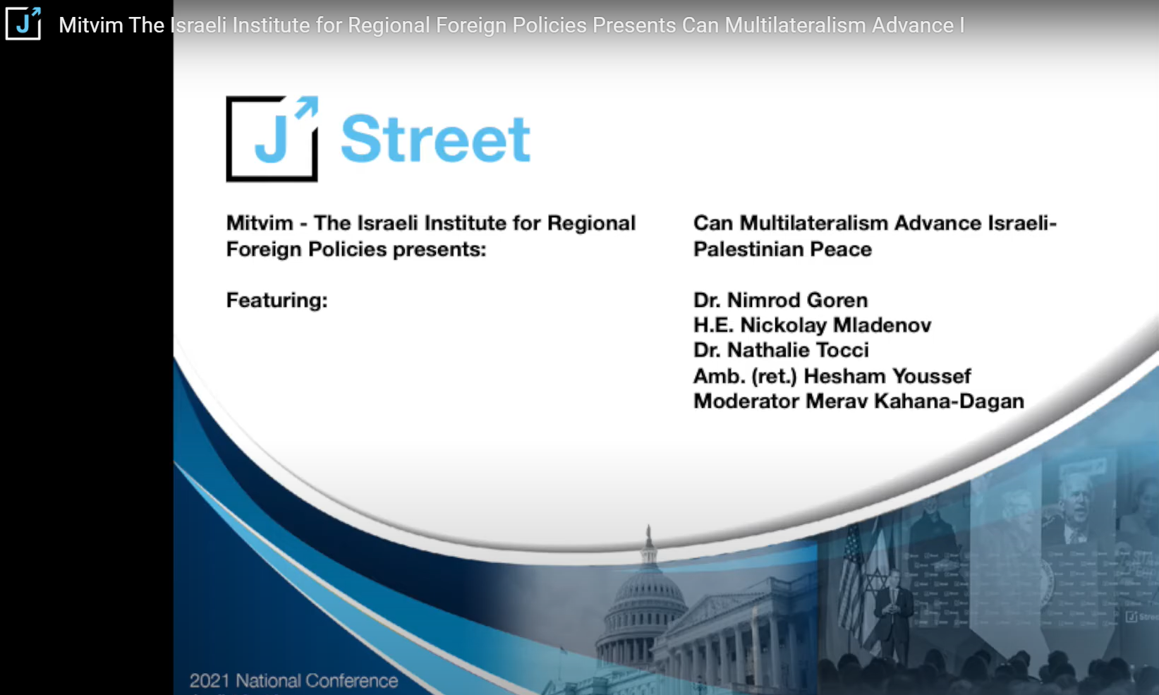 B. Israeli-Palestinian Peacemaking 1. The international discourse on Israeli-Palestinian peacemaking, Dr. Lior Lehrs, based on a series of Mitvim Institute policy dialogues (conducted by Lior, Victoria Solkovits and Dr. Nimrod Goren) with European, Arab, American and UN diplomats and experts. 2. Can multilateralism advance Israeli-Palestinian peace?, Video of the Mitvim panel in the 2021 J Street National Conference, featuring: Amb. (ret.) Hesham Youssef, H.E. Nickolay Mladenov, Dr. Nathalie Tocci, and Dr. Nimrod Goren; moderated by Merav Kahana-Dagan. 3. The UAE and the Israeli-Palestinian peace process, Dr. Moran Zaga. 4. Greece, Cyprus and the Israeli-Palestinian peace process, Gabriel Mitchell. 5. Morocco and the Israeli-Palestinian peace process, Einat Levi, Dr. Roee Kibrik, Dr. Nimrod Goren.