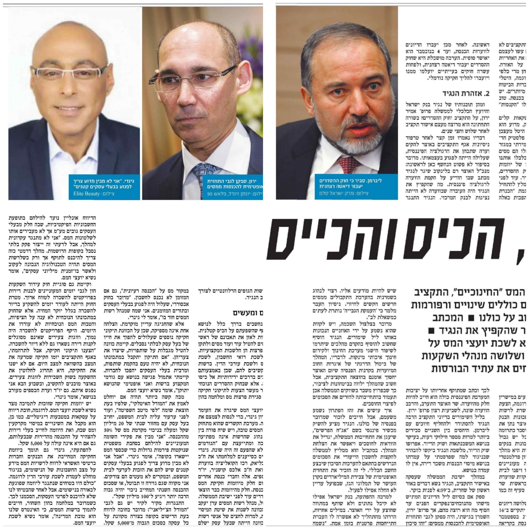 | חוקי המס שיחולו בקרוב על העסקים - מעריב מדווח במגזין סופ״ש: ״לשכת יועצי המס שיגרה את העומד בראשה, ירון גינדי, כדי לנסות לצמצם את רוע הגזירה. מערכת הקשרים שהוא מתחזק עם רשות המסים טובה, ויש שיח פורה בין הצדדים. נהוג שהרשות אינה מפתיעה את הלשכה.