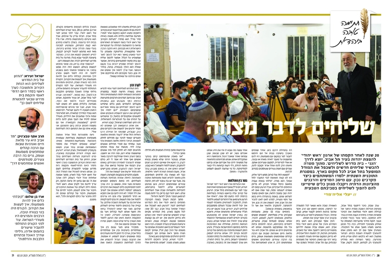 | שליחים לדבר מצווה / יעלי אליה – מדי ערב שבת, כיכר דיזנגוף בתל אביב, מנגינות תפילות השבת ממניין החצר של קהילת ראש יהודי ממלאות את הכיכר ומשרות אווירה מיוחדת וקצת אחרת בעיר ללא הפסקה. בחור צעיר בבגדי ספורט, נעצר, לוקח סידור מהערימה המונחת על שולחן ומצטרף לתפילה, ככה בלי תכנון מראש משהו מושך אותו אל החבורה. כשהרב אסף שם לב הוא מזמין אותו להצטרף לסעודת השבת בביתו. הבחור מתנצל, הוא לא בלבוש הולם ועדיין מזיע מהריצה, בסוף השיחה הוא מחליט להצטרף רק לקידוש, לכמה דקות, אבל האווירה טובה והוא נשאר לכל הסעודה עד לסיומה. מפגש ראשון עם הרב אסף שהפך ברבות הימים לקשר אמיץ, קרוב ומיוחד, הכולל מפגשים ולימודים בחברותא ובקרוב הרב אסף יערוך את חופתו. 20 שנה לאחר הקמתו של ארגון 'ראש יהודי' להפצת יהדות בעיר תל אביב, יוצא לדרך 'הנני – בית מדרש לשליחים', מתוך מטרה להכשיר שליחים חדשים ולשכפל את המודל המופעל בתל אביב לכל מקום בארץ. במסגרת התוכנית השנתית ילמדו המשתתפים כיצד מקרבים נכון, עם מיטב המרצים והרבנים מהציונות הדתית ויקבלו מגוון כלים שיסייעו להם להפוך לשליחים בסביבתם הטבעית. הרב אסף טבצ'ניק: "תל אביב היא עיר מלאת חיים ואנרגיות טובות עם הרבה קהלים שמחפשים משמעות ועומק, גרים בה הרבה צעירים סטודנטים ואנשים שמחפשים דרך" הרב אסף טבצ'ניק הוא ראש בית המדרש והרב של ארגון ראש יהודי בתל אביב. הוא, אשתו צביה וששת ילדיהם מתגוררים ברחוב דיזנגוף בתל אביב. אזור של פאבים, מסעדות, תרבות, לב הסצנה התל אביבית. לא בדיוק המקום שהייתי מצפה לפגוש בחור דתי עם פאות. הסיפור של משפחת טבצניק עם תל אביב התחיל כשהם עוד היו בתחילת דרכם כזוג. אחרי שנתיים כאברך בישיבה בבית אל, הם חיפשו לעבור לגור במקום עם משמעות. היו להם מחשבות על מעבר לאיזה מאחז או גבעה, או אולי לפריפריה, למקום שצריכים אותם. מישהו זרק להם שתל אביב זקוקה להם, שגרים שם זוגות צעירים שעוסקים בקירוב לבבות. "הנושא הזה של קירוב ממש דיבר אלינו, היו לנו קצת חששות לגבי המעבר לתל אביב", הוא מודה. "גדלתי בגימזו, צביה במושב כרמל שבהר חברון, לא בדיוק טיפוסים תל אביביים, אבל הרעיון קסם לנו, ואמרנו לעצמנו, ננסה, נגור שנה ואם לא יהיה טוב נמשיך הלאה, אם יתאים נמשיך לשלוש שנים. באמת בהתחלה חיינו בסוג של ניסוי וטעייה, למדנו לאט לאט להכיר את תל אביב ואיך לעשות את זה נכון, איך להתחבר, להתקרב ולהאיר את אור ה' בפשטות בשמחה ובעומק". בינתיים עברו 13 שנים, ומשפחת טבצ'ניק עדיין בשליחות. "פוגשים אנשים נפלאים, שצמאים לדעת, לשמוע להכיר. אנחנו עושים סעודות שבת, שיעורים, לימודים בחברותא, הכנה לחתנים וכלות וכל מה שמתבקש מהשטח. אנחנו לא מרגישים זרים או שונים. תל אביב היא עיר מלאת חיים ואנרגיות טובות עם הרבה קהלים שמחפשים משמעות ועומק, גרים בה הרבה צעירים סטודנטים ואנשים שמחפשים דרך, זו ארץ האפשרויות וכל אחד עושה מה שבא לו וחי את חייו. אנחנו אוכלים כשר, יש לנו שכן טבעוני, שכן צמחוני ואחד שאוכל הכל...והתחושה היא שמקבלים אותנו, ואנחנו מבחינתנו בתחושה של ממשיכי דרכו של אברהם אבינו וביתנו פתוח לכולם, בלי דעות קדומות בלי קשר לפוליטיקה כל מי שרוצה לטעום לשמוע ולהתקרב". גשר בין העולמות ישראל זעירא: "החזון של בית המדרש לשליחים להביא עוד 30 משפחות שיבואו ללמוד מהי שליחות" את הפעילות של ראש יהודי ייסד ישראל זעירא, איש נדל"ן, שאף הוא בשנים האחרונות עבר לגור עם משפחתו בתל אביב. הרעיון של קירוב עלה לו כשהיה בשליחות ברוסיה לפני כמעט 30 שנה. "ראיתי את הרצון והצימאון של היהודים לשמוע וללמוד תורה, להתקרב לשורשים וחשבתי לעצמי איך יכול להיות שבכל העולם מסתובבים שליחים לקרב יהודים, ובכל מקום יש בית חב"ד שישראלים מחפשים אחריו, ודווקא פה בארץ ישראל, אנחנו לא מתעסקים בקרוב יהודים לאבינו שבשמים? הרגשתי שיש צורך לחולל את השינוי אצלנו בקרב הציונות הדתית שחוללה המהפכות גדולות בתחום ההתיישבות ובצה"ל, והגיעה הזמן לעשות מהפכה גם בתחום של קרוב ל