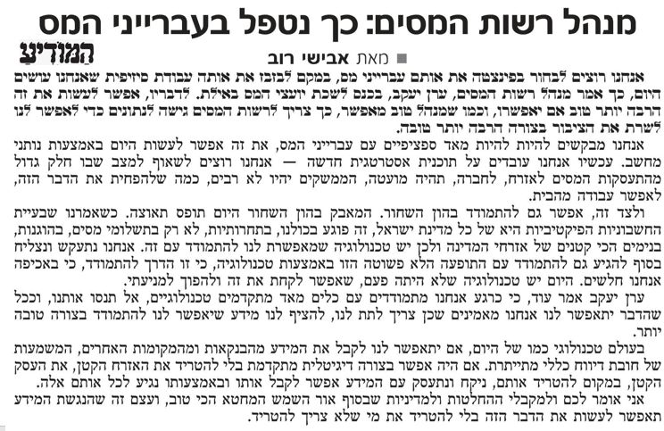 | ערוץ 13 שידורי רשת, ערוץ כאן 11, YNET, גלובס, מעריב, המודיע ואתר ביזפורטל סיקרו את המושב המקצועי בכנס השנתי של לשכת יועצי המס, בו יוע"מ ירון גינדי נשיא הלשכה אירח את ערן יעקב מנהל רשות המיסים, בדיון על סוגיות המס המהותיות ביותר שעל סדר היום. בדבריו בכנס בירך ערן יעקב מנהל רשות המיסים על שיתוף הפעולה עם לשכת יועצי המס, והוסיף: יש לנו יכולת לייצר סינרגיה באמצעות שיתוף פעולה, אפשר להביא את השותפויות כדי ליצור סדר יום חדש במדינת ישראל, ואפשר יהיה להביא עוד לא מעט חקיקות, שבסופו של יום יאפשרו לכולנו לנצח את ההתמודדות שלנו, וזה לא מובן מאליו". ערוץ 13 שידורי רשת בתוכנית "הכל כלול": https://youtu.be/NUFGC46oGJM ערוץ כאן 11, התוכנית "משחקי כיס": https://youtu.be/3yMNTxrhzvQ אתר YNET: https://www.ynet.co.il/economy/article/rkgzc2qhk אתר גלובס: https://www.globes.co.il/news/article.aspx?did=1001387648 עיתון ואתר מעריב: https://www.maariv.co.il/business/economic/israel/Article-871592 עיתון המודיע ואתר ביזפורטל: https://www.bizportal.co.il/digital-currency/news/article/796960 התקשורת ממשיכה לדווח גם על דברי שר האוצר אביגדור ליברמן מערב הפתיחה של הכנס שלנו: אתר ערוץ 13 שידורי רשת: https://13news.co.il/item/news/domestic/articles/protest-doctors-1384494/ אתר אייס: https://www.ice.co.il/media/news/article/833208 |