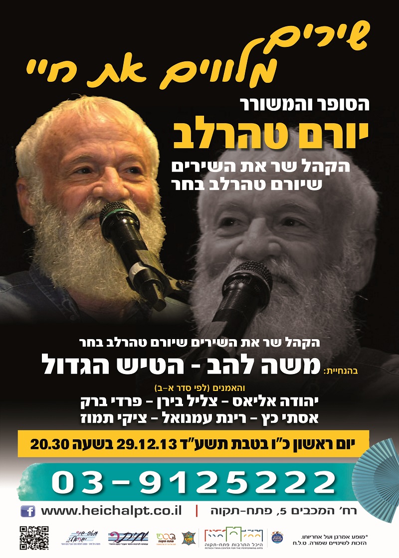 פינת ההמלצה החמה: שירים מלווים את חיי ערב הוקרה ליורם טהרלב, בין המשתתפים, ידידתי ולעתים שותפתי, הזמרת אסתי כץ, ועל ההפקה, עמותת מיתר בניצוחו של איתן גפני. יום ראשון, 29.12.13, בשעה20:30 בהיכל התרבות בפתח-תקוה. |