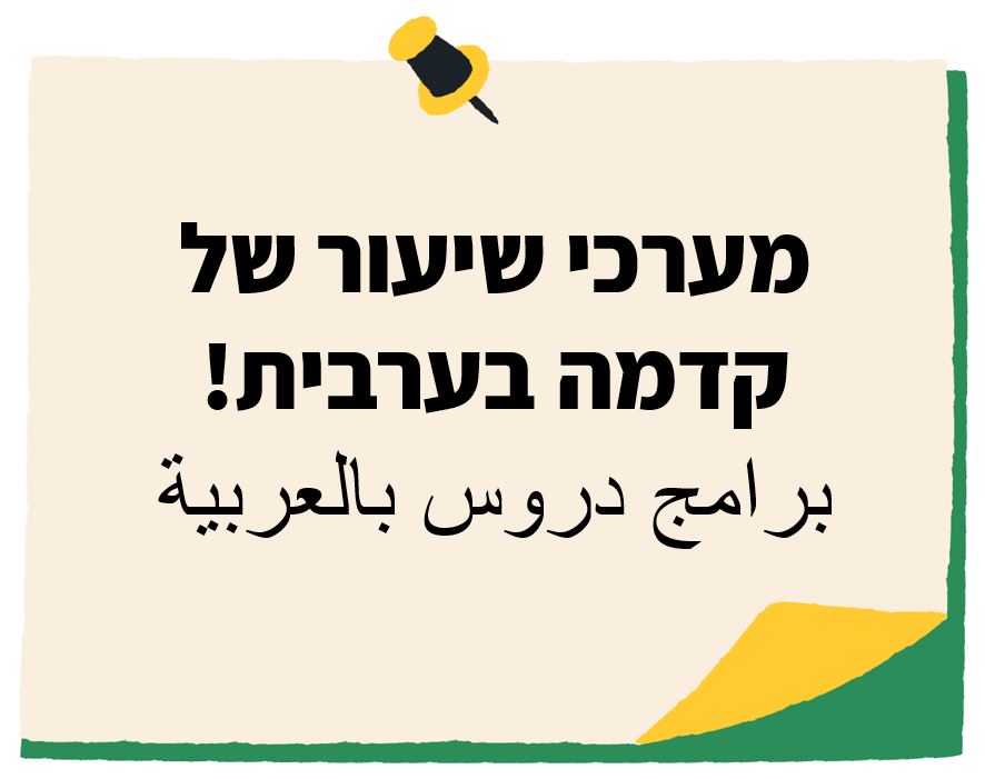 | שמחות לשתף אתכן/ם בתהליך משמח ומרגש שהתחלנו השנה: תרגום חלק ממערכי השיעור שלנו לשפה הערבית. בקישור למטה תופנו לאתר שלנו, לתגית מערכי השיעור בערבית, ותוכלו לראות את כל המערכים שתורגמו עד כה. אם יש לכן/ם קולגות, מכרים/ות או חברים/ות שהמערכים המתורגמים שלנו יכולים לעניין אותם, אנא העבירו את הקישור בתוספת המלצה חמה! |