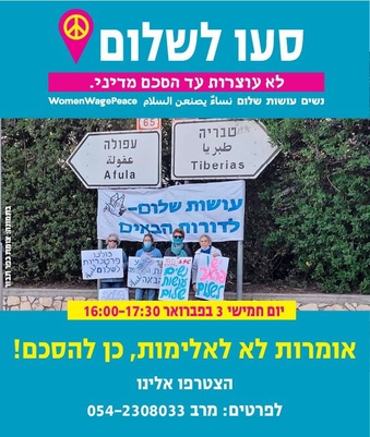 | אנחנו יוצאות בכל מזג אוויר, בכל רחבי הארץ, לצמתים, למרכזי הערים – מתעטפות היטב וממשיכות בנחישות ובהתמדה, גם כשסוער וגשום, לעורר את דעת הציבור והמנהיגות ומקבלי ההחלטות… מוזמנות להצטרף אלינו ביום חמישי ה-3 בפברואר בצומת הקרוב אליכן! לפרטים מרב 054-230803. |
