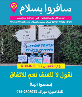 | שני מפגשים שונים התקיימו החודש עם צעירים וצעירות. ב -4.1.22 נפגשו חברות התנועה רחל סוויסה ונעמי רגב עם חברי מכינת רוח נכון (מכינה מעורבת של כחמישים בנות ובנים, חילוניים ודתיים) בבית המכינה בעין כרם. הייתה התעניינות כנה וערנית ונשאלו שאלות רבות: למה הובלה נשית בלבד? למה להתעקש על השתתפות נשים בנושאי שלום וביטחון? האם אתן באמת מאמינות שיש סיכוי להגיע להסכם מדיני לשלום? הזמן לא הספיק לכל הנושאים ולכן מתוכנן מפגש נוסף, לפני גיוסם, להרחבה בנושאי חוק חלופות תחילה והחלטה 1325 ומשמעויותיה. מפגש אחר ערכו חברות התנועה עמאל אבו-רמדאן ושרון פרץ עם כ-20 סטודנטים מאוניברסיטת ת"א, במסגרת התוכנית הבינלאומית ליישוב סכסוכים בה לומדים סטודנטים מכל העולם לתואר שני. יחד אתן, בזום, היתה ניוין סנדוקה Nivin Sandoka ממזרח ירושלים. היא סיפרה על תנועת נשות השמש, תנועה של פלסטיניות עושות שלום מהגדה ומעזה, תנועה-אחות לנשים עושות שלום. הסטודנטים גילו סקרנות מרובה ושאלו שאלות רבות. |