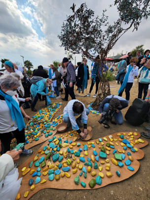 במהלך האירוע הוסר הלוט מעל עבודת אומנות של עץ זית, פרי יצירה של האמן ניהאד דביט, ובתחתית העץ, על ידיים פשוטות, הונחו האבנים עם המשאלות. הנשים ירדו אל חוף ים המלח עם הדגלים, שרו "הגיע זמן שלום" ושיגרו ענפי זית אל בין הגלים.