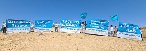 הנעליים הרטובות עוד לא הספיקו להתייבש מאירוע ים המלח ועושות השלום הגיעו ב- 28.3 לפסגת הנגב בשדה בוקר כדי להזכיר למשתתפים: לא שכחתם מישהו? הנשים הגיעו כדי לברך את שרי החוץ על בואם לוועידה, אך גם כדי להזכיר להם שלא ניתן להשאיר את הפלסטינים מחוץ לדיון. כל עשייה מדינית אזורית חייבת לכלול גם את השכנים שלנו, שהרי הם אלה שעלינו לבנות איתם עתיד משותף.