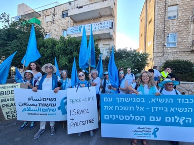 • הגענו לירושלים. צעדנו ממרכז העיר לכיכר האריות שם פגשנו את פעילות תנועת נשות השמש הפלסטינית. ביחד העברנו מסר ברור לנשיא ביידן, לנשיא הרצוג, לאבו מאזן: הקשיבו לקול האימהות! שימו את השלום על סדר היום!