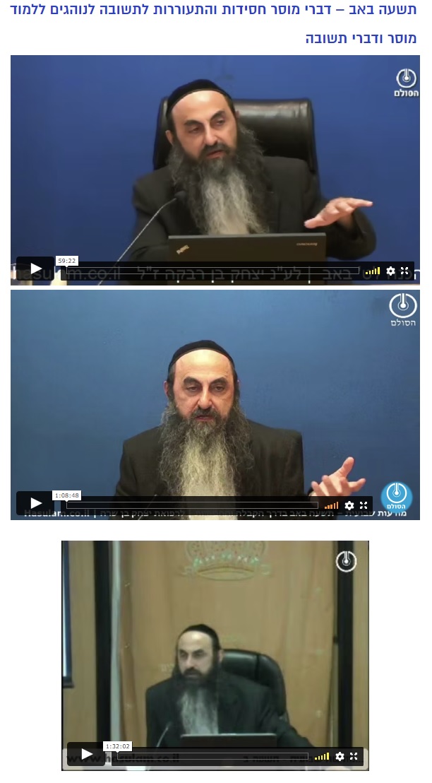 *יש הנוהגים לקרוא בספרי מוסר המעוררים לתשובה. *לחוזרים בתשובה\מתחזקים בתהליך יכולים לצפות בשיעורי תשובה והתעוררות המצורפים לפני סוף העלון.