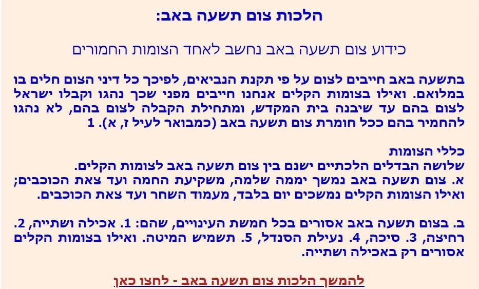 *עקבו אחרינו בפייסבוק *יהיו שידורים חיים במהלך תשעה באב *כמו כן יהיו ביוטיוב מקבצי שיעורים מענייני תשעה באב