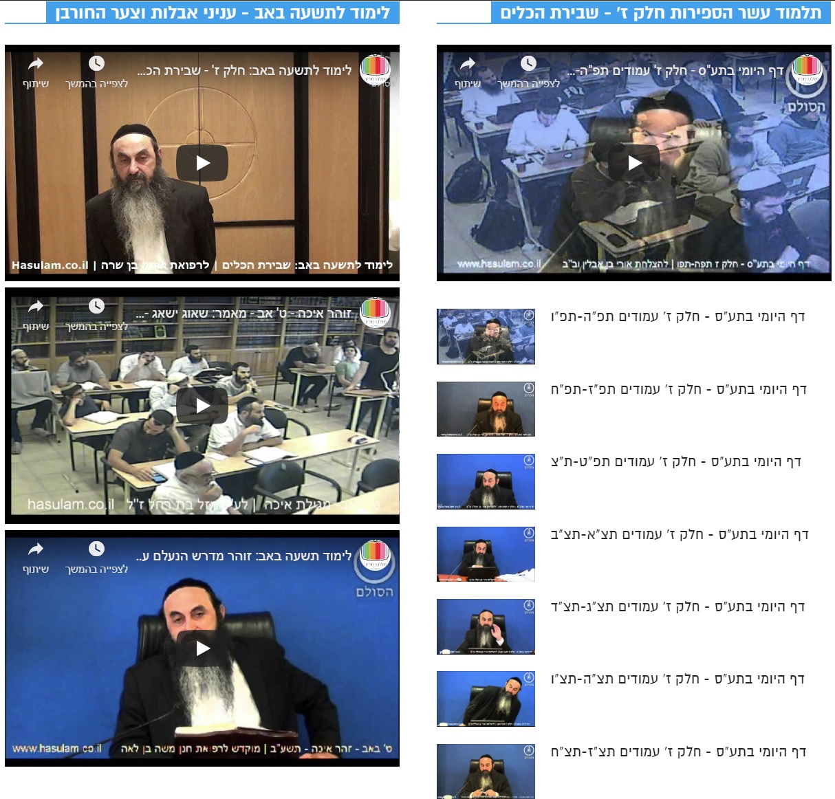 | ריכזנו לכם מקבץ שיעורים ותכנים לתשעה באב - זוהר איוב, איכה, תלמוד עשר הספירות שבירת הכלים, שיעורי מוסר וחסידות לתשעה באב, פינת הפשט, הלכות תשעה באב, סיפורי החורבן ומקבץ דברי הרב לצאת הצום. שיהיה צום קל בע"ה וצער אמיתי לנשמה, וכפי שנאמר "כל המתאבל על ירושלים - זוכה ורואה בשמחתה" אמן