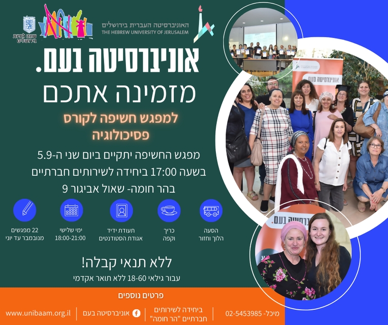 | אוניברסיטה בע"מ אצלנו בשכונה! מפגש חשיפה לקורס פסיכולוגיה |